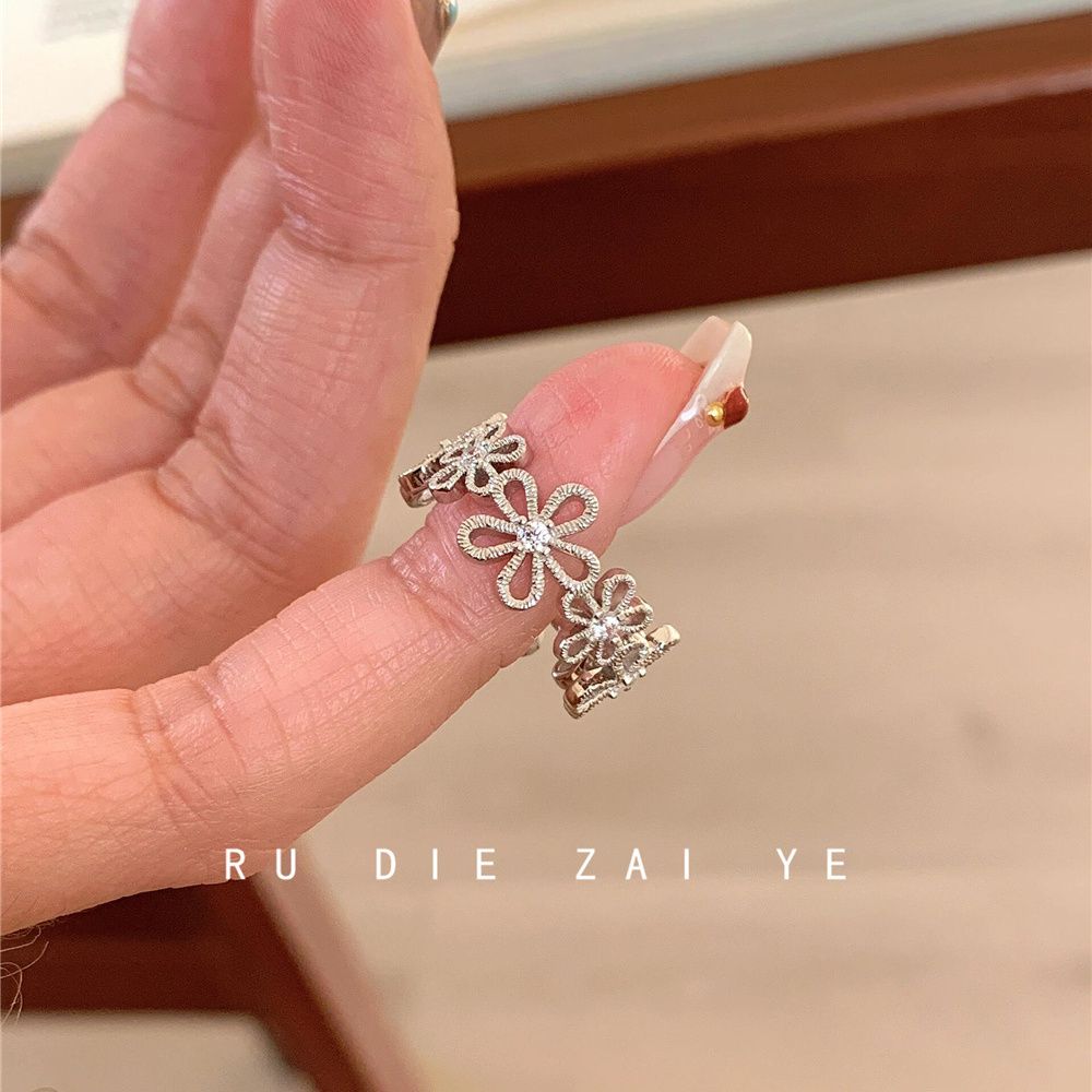 s925纯银蕾丝花环戒指女款甜美银色轻奢精致春夏小众设计指环