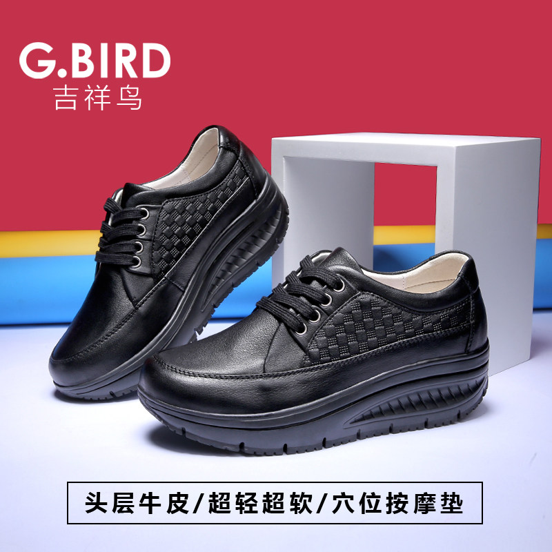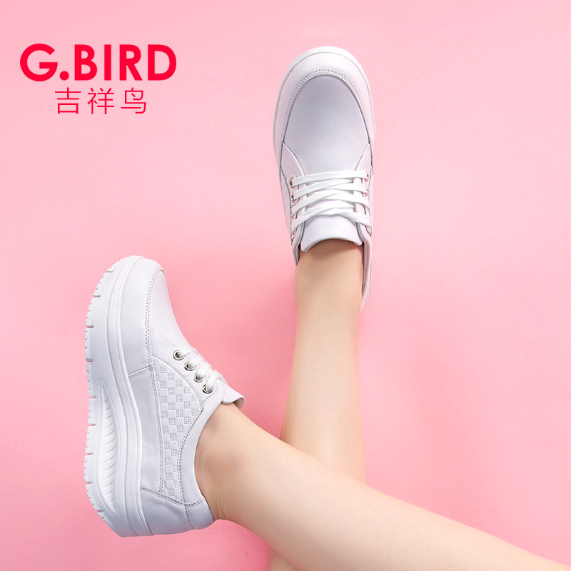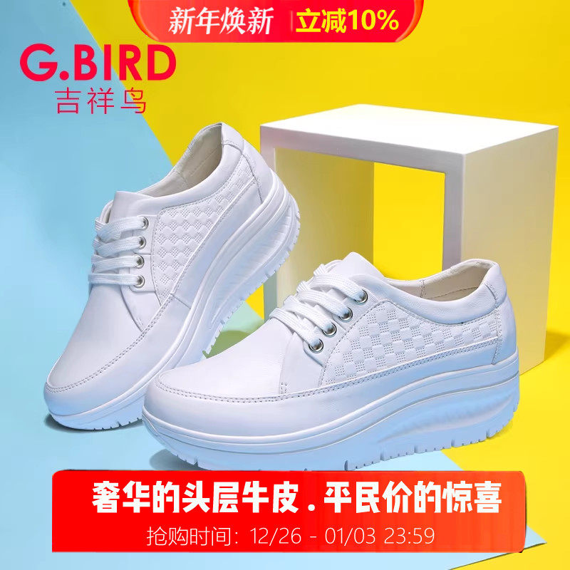吉祥鸟超轻女鞋2026春夏真皮休闲百搭小白鞋摇摇松糕系带增高0708