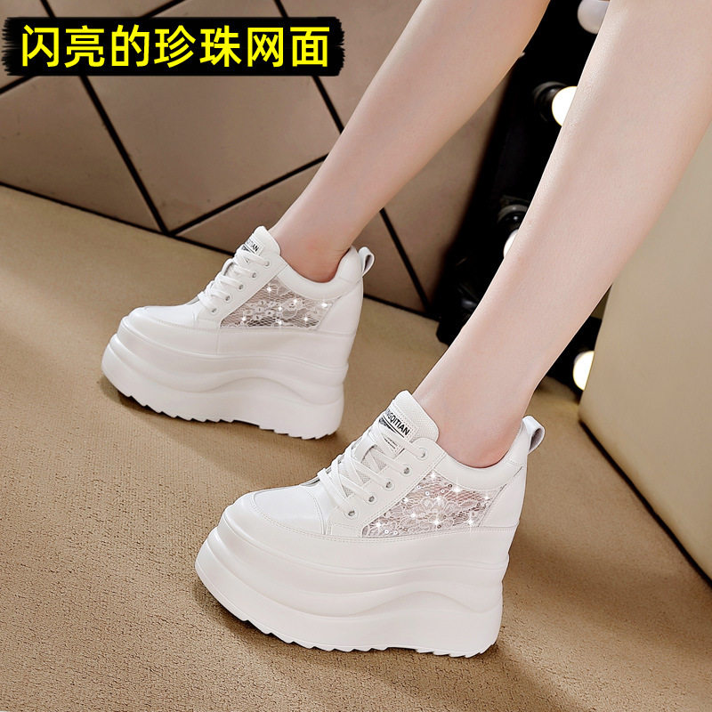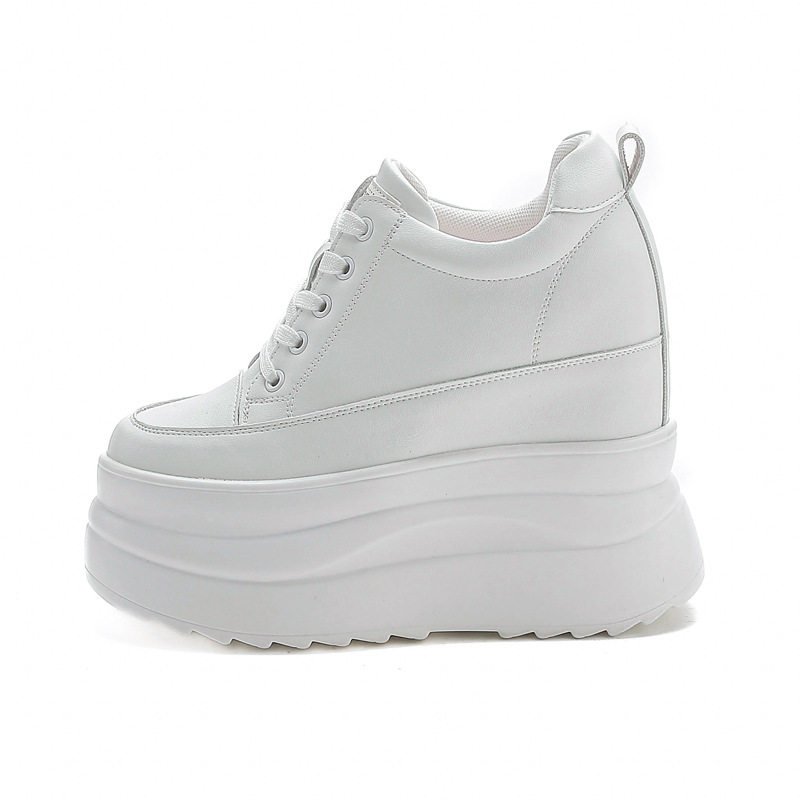 2026春季新款真皮单鞋休闲厚底轻便松糕超高跟13公分内增高小白鞋