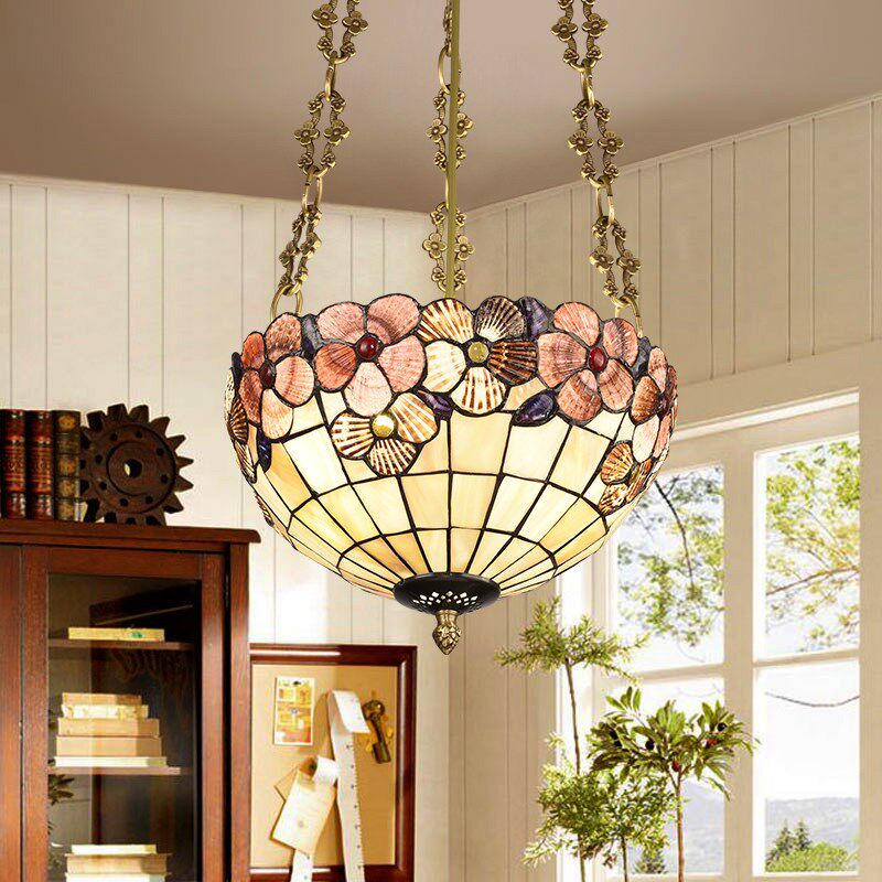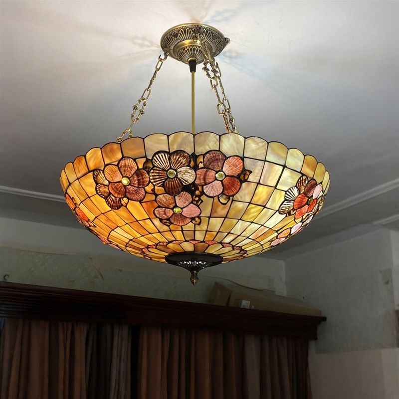 美式创意富贵花贝壳灯餐吊灯书房艺术灯饰卧室反吊灯入户花园吊灯