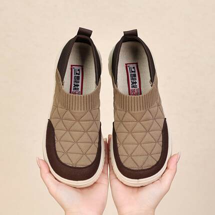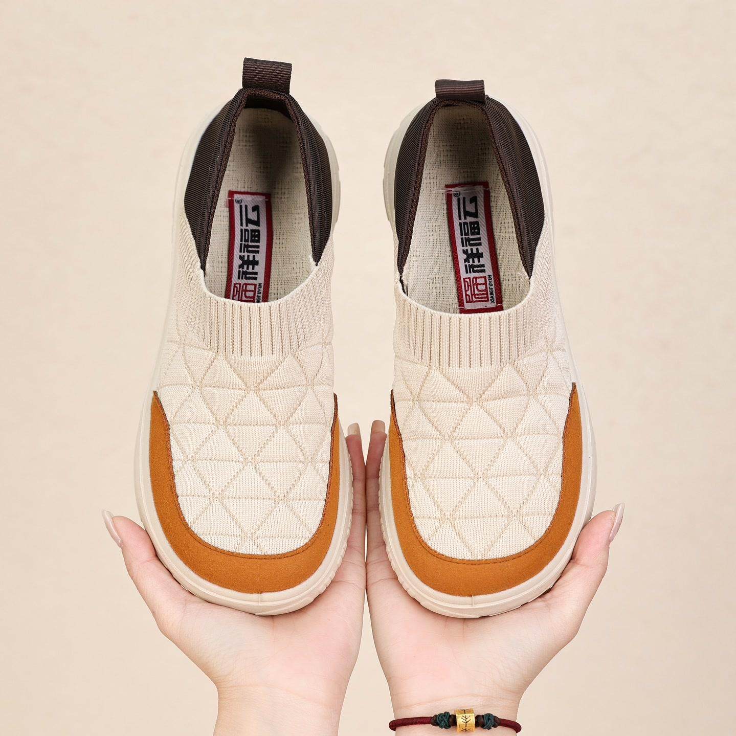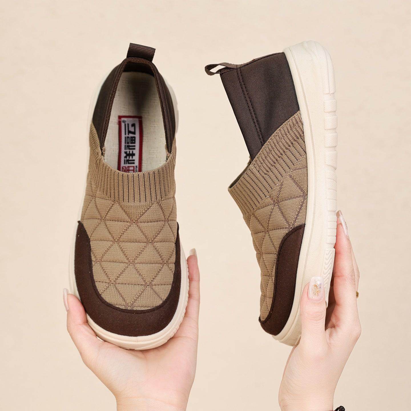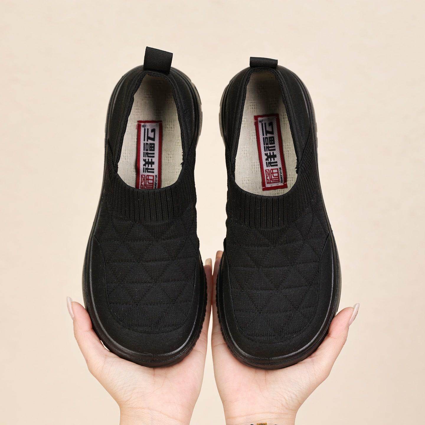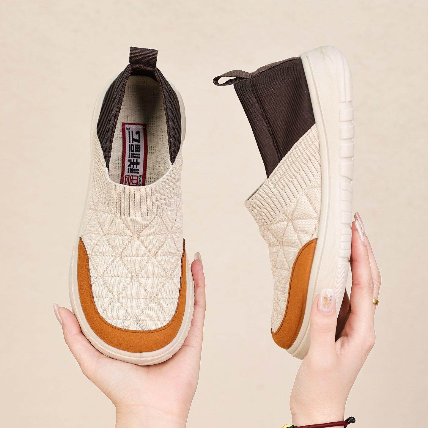 祥福云老北京布鞋女春季新款飞织拼接舒适百搭一脚蹬平底防滑单鞋