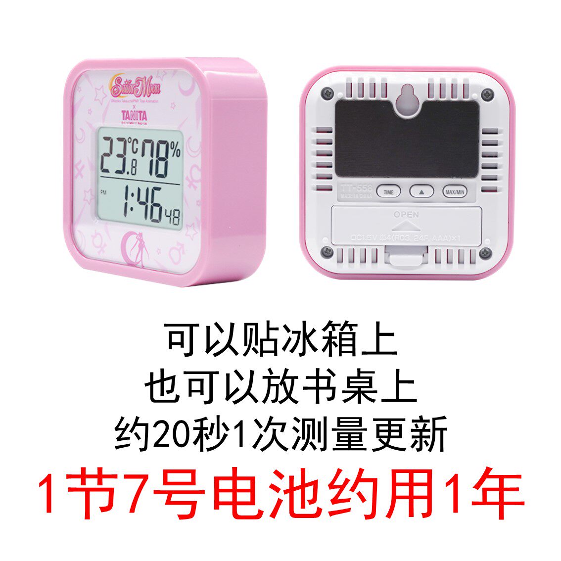 【限定款】百利达TANITA美少女战士电子温湿度计儿童计时粉色