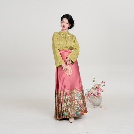 织造司[早春晴朗]立领刺绣暗纹提花衬衫上衣桃红色妆花织金马面裙