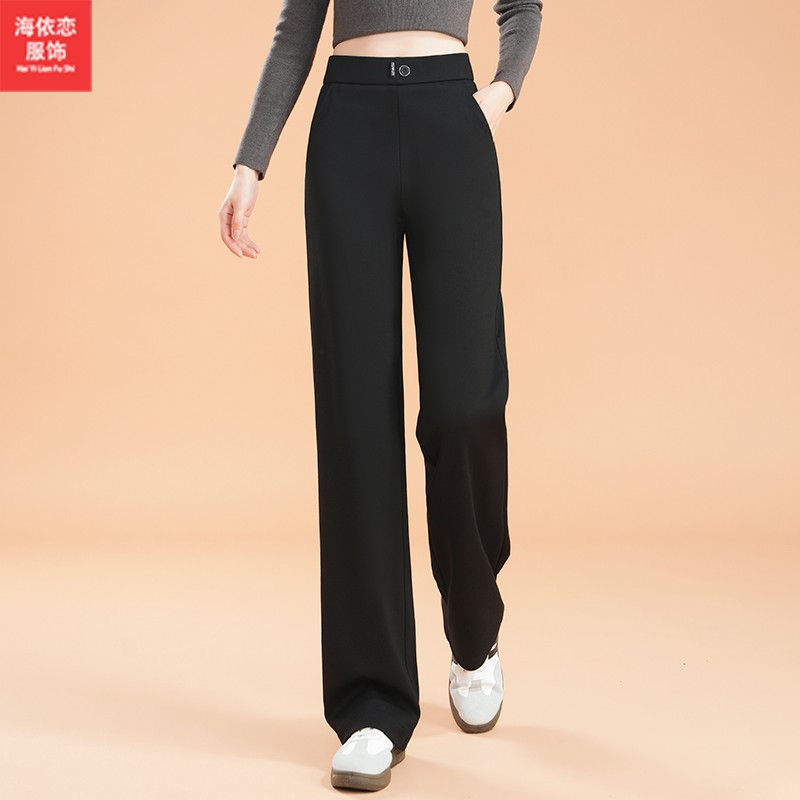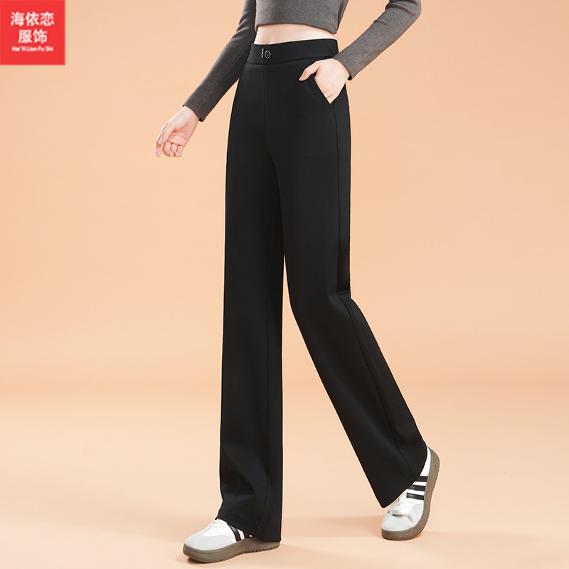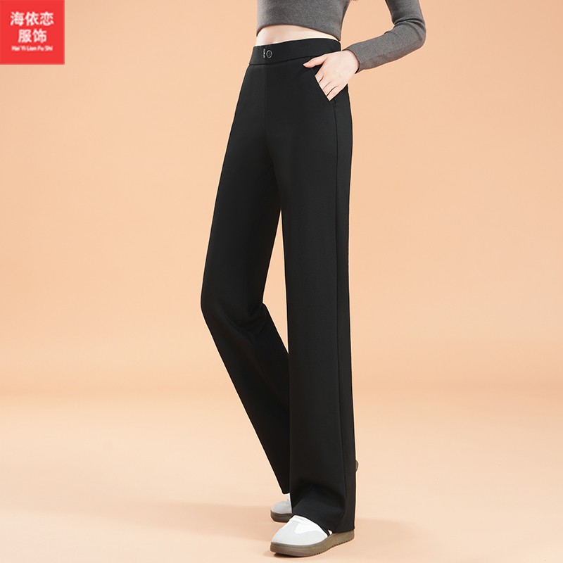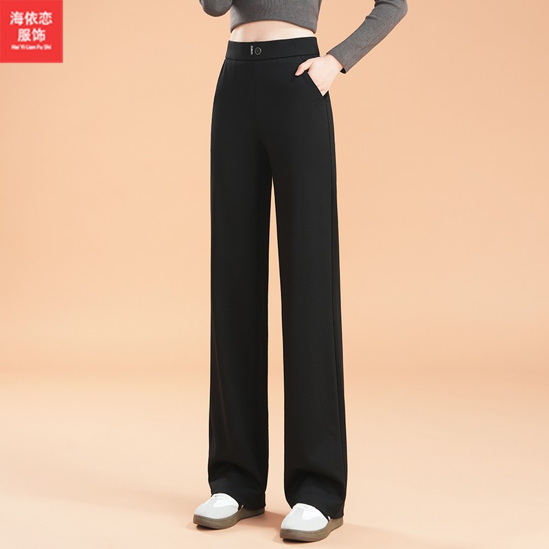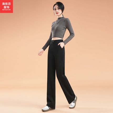 黑色窄版直筒裤女高腰垂感阔腿裤2025春秋新款百搭显瘦休闲西装裤