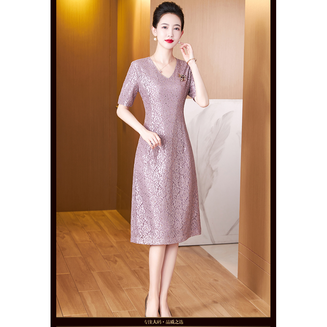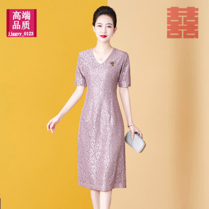 妈妈婚宴连衣裙蕾丝短袖夏装