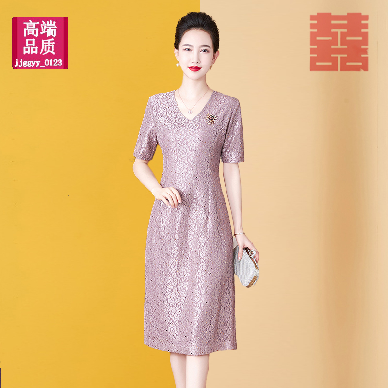 喜婆婆婚宴装蕾丝连衣裙结婚可穿妈妈年轻高贵婚礼服短袖夏装订婚