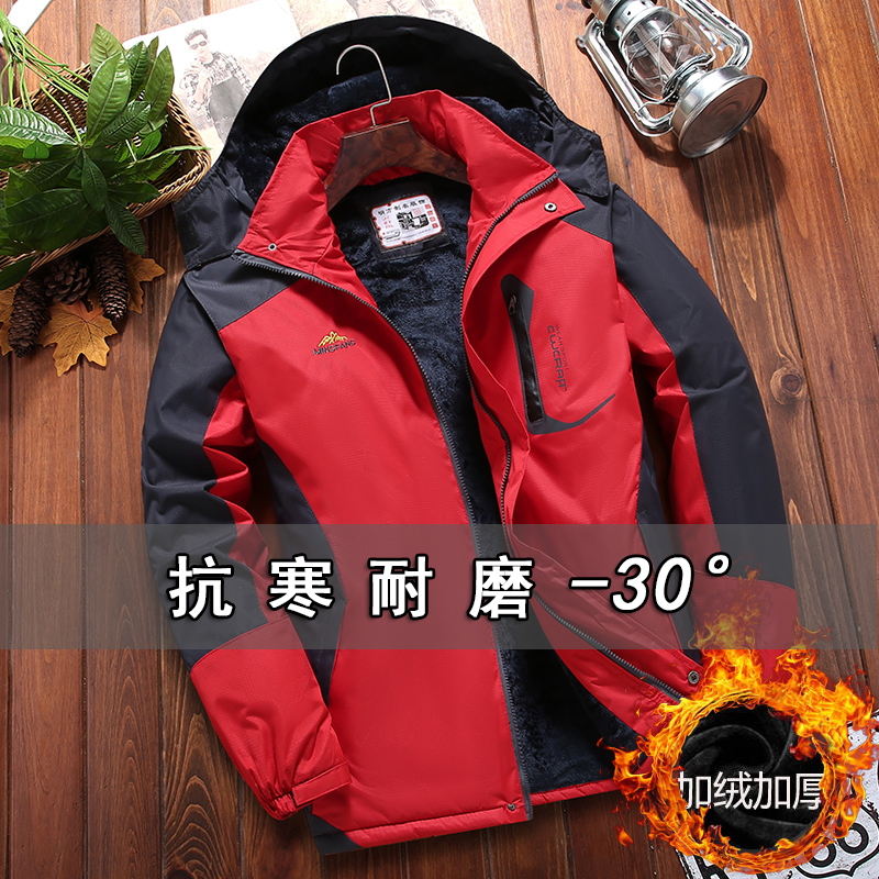 加绒加厚男士棉衣外套冬季防风防水冲锋衣中老年棉袄休闲保暖棉服