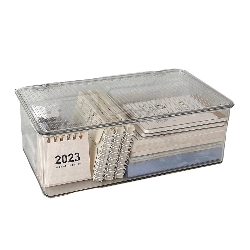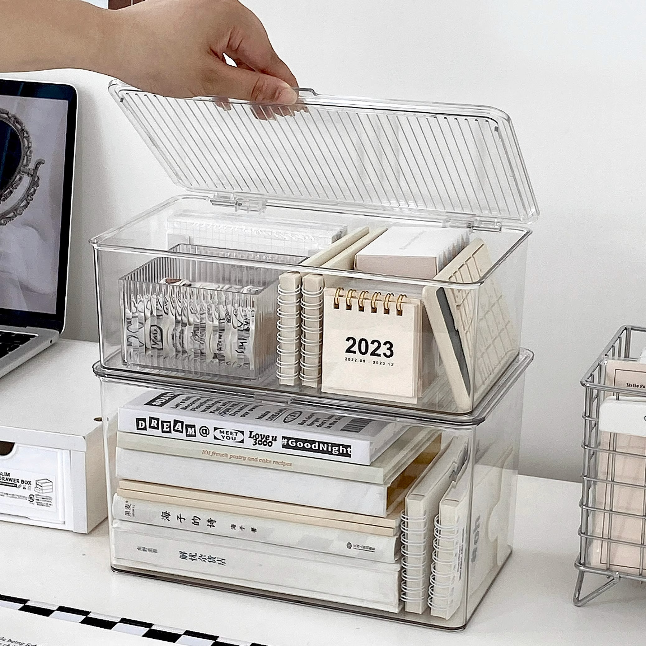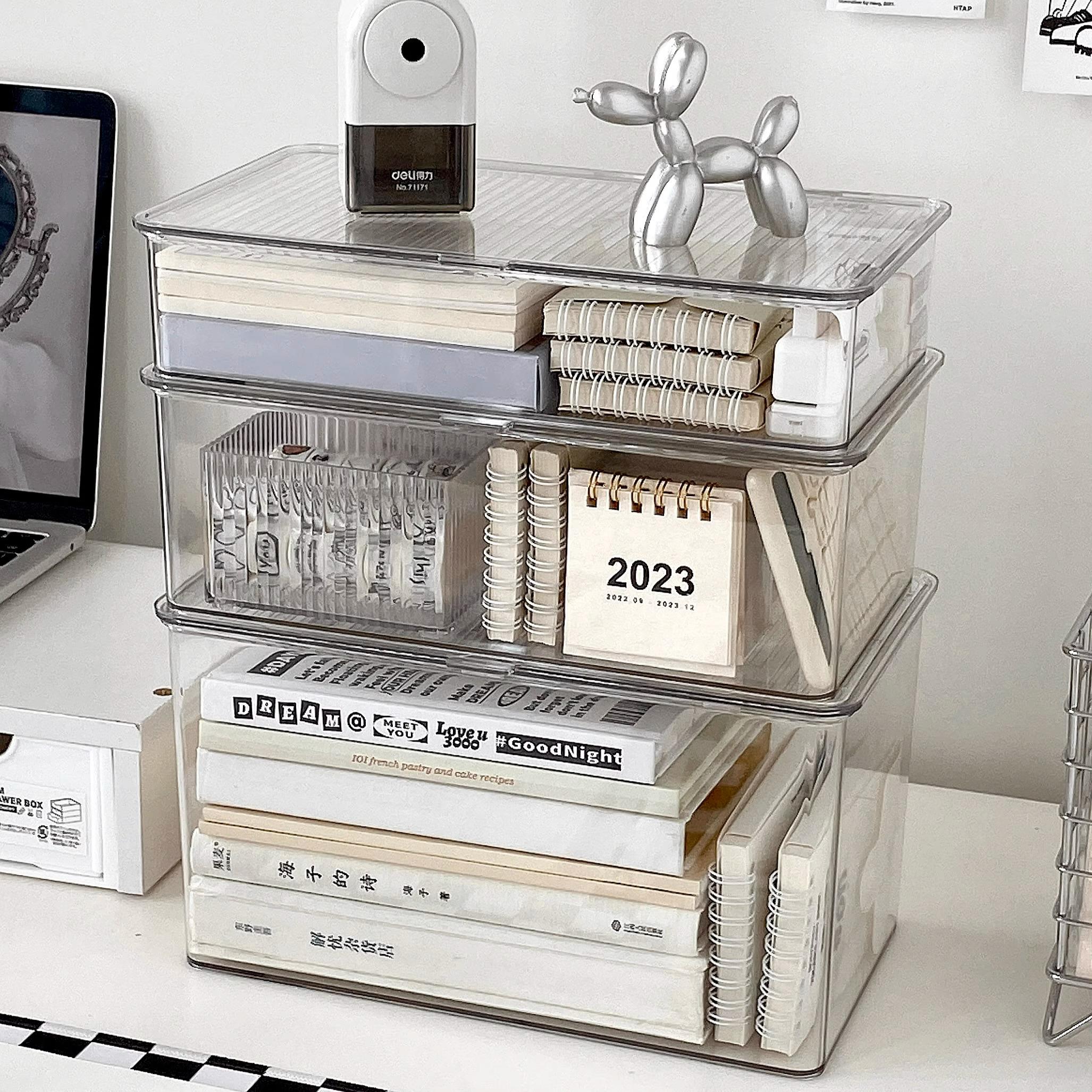 亚克力收纳盒桌面带盖透明置物架书桌化妆品饰品便利塑料防尘盒子