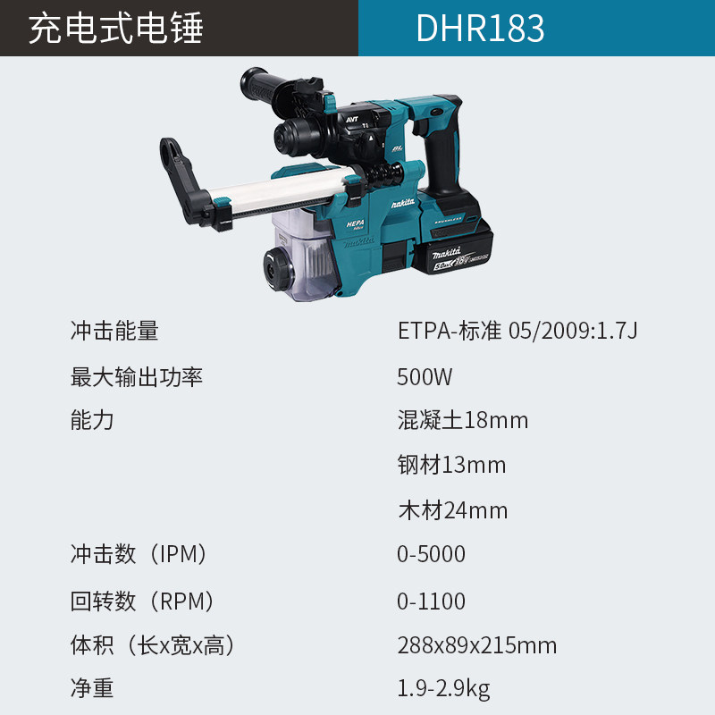 牧田新款DHR183轻量电锤充电式多功能锤钻18V电动凿嵌工具