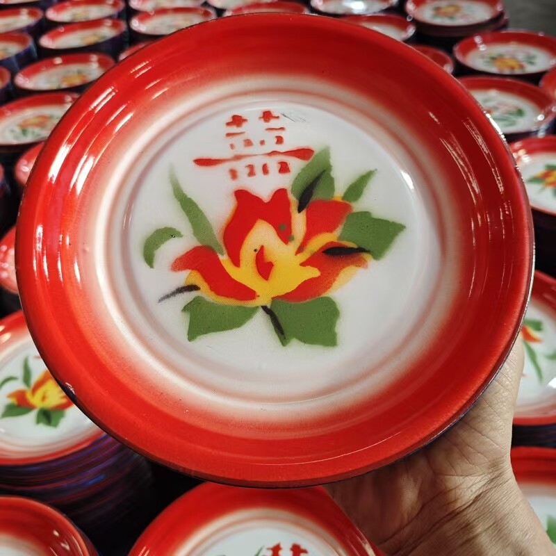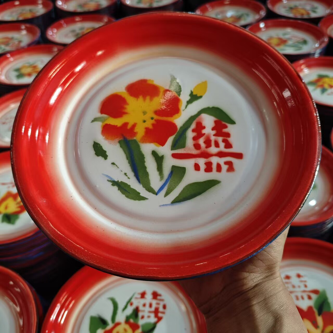 老式搪瓷盘子绿蓝色怀旧复古大茶盘80年代喜字秤称盘火锅麻辣烫