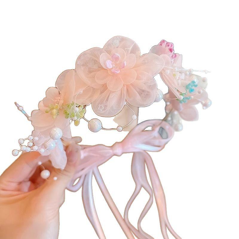 2025新款儿童花环头饰编发发箍发带女童公主皇冠头花森系仙美发饰