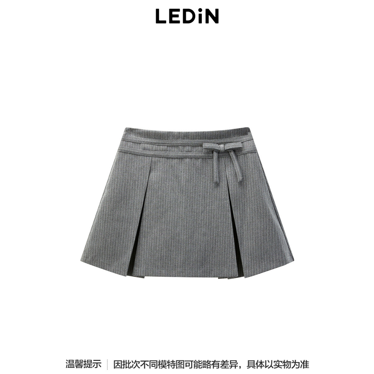 【商场同款】乐町竖条纹百褶裙冬季新款蝴蝶结短裙C1GEE4257