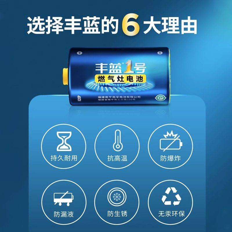 南孚丰蓝1号电池燃气灶一号热水器煤气灶家用双灶单灶D型大号碳性