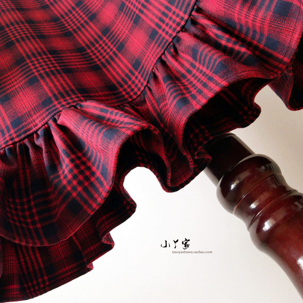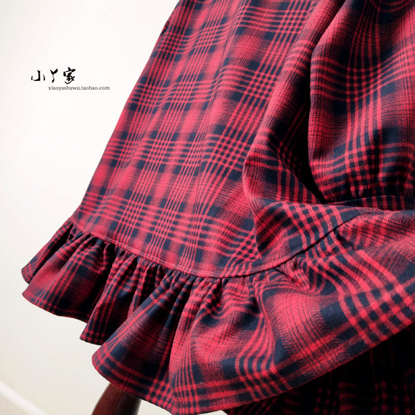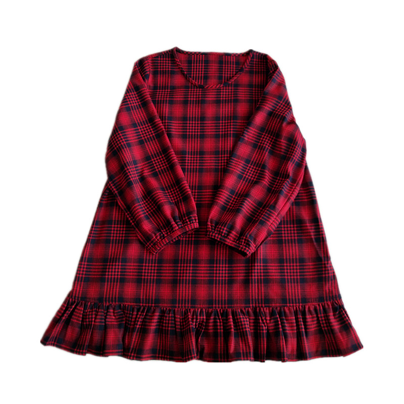 圆领套头宽松娃娃款裙子减龄显瘦遮肉可爱红色格子长袖连衣裙