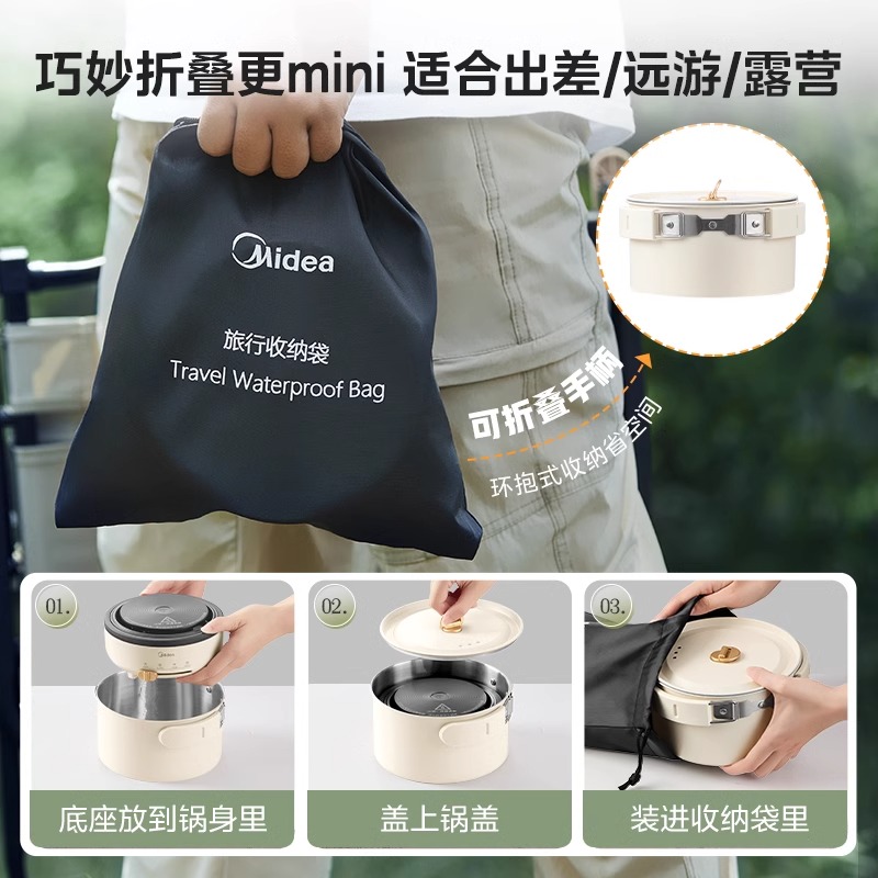 美的折叠电煮锅316L不锈钢小型多功能迷你一人食火锅可上飞机高铁
