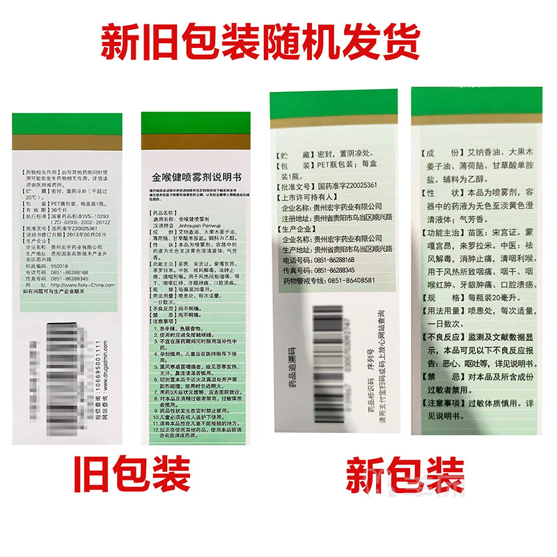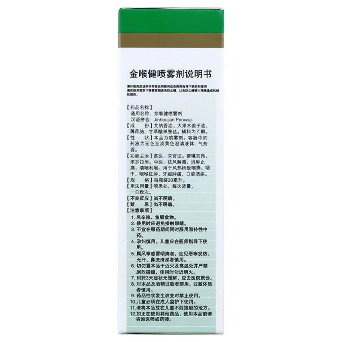 【宏宇】金喉健喷雾剂20ml*1瓶/盒牙龈肿痛咽痛口腔溃疡