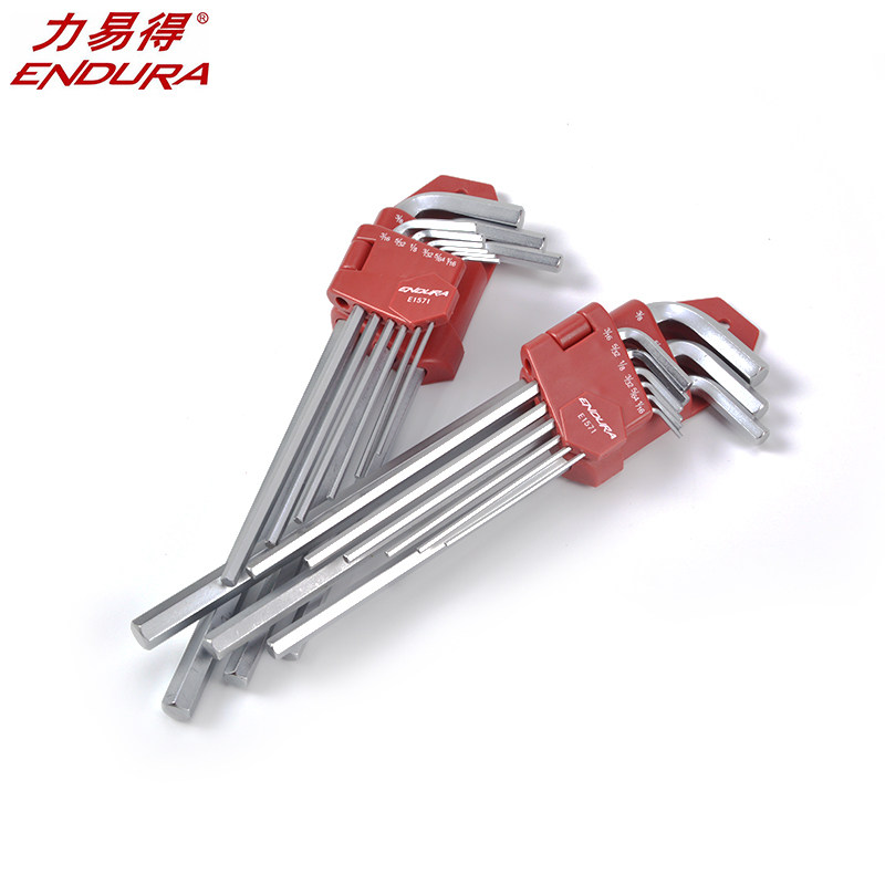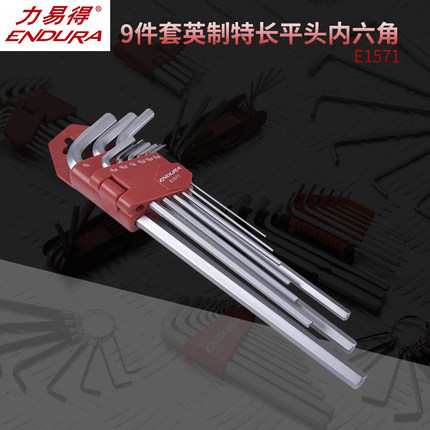 ENDURA力易得E1571 9件套英制特长平头内六角扳手组套 1/16-3/8