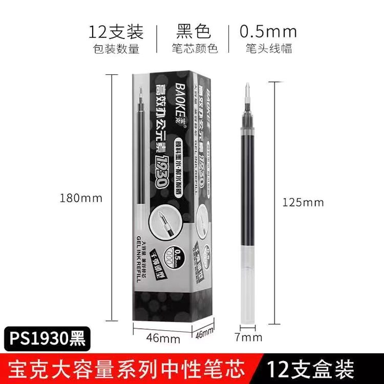 宝克大容量中性笔芯签字笔芯0.5子弹头学生黑色芯0.7按动替芯蓝黑
