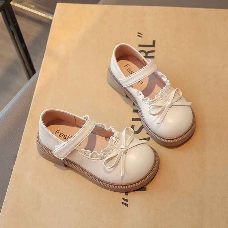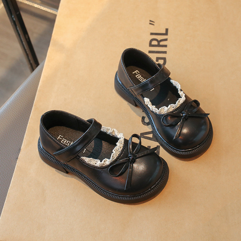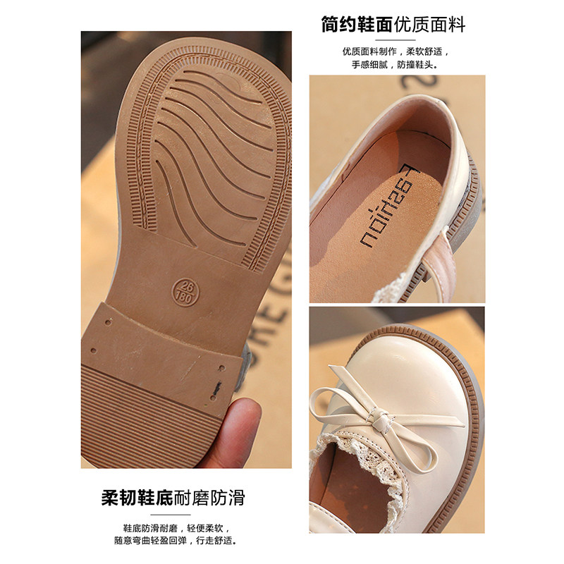 女童蕾丝边蝴蝶结皮鞋鞋子儿童2026春秋新款软底玛丽珍洋气公主鞋