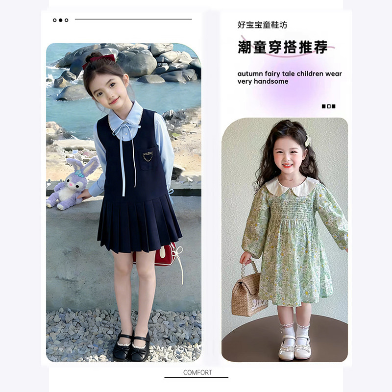 女童真软皮蝴蝶结皮鞋洋气公主鞋