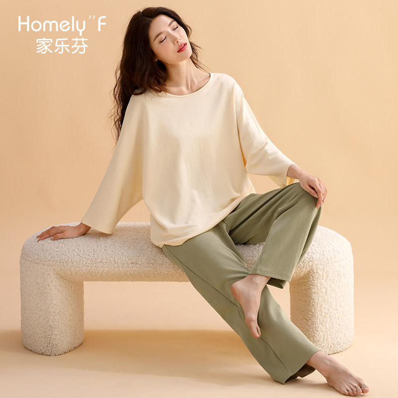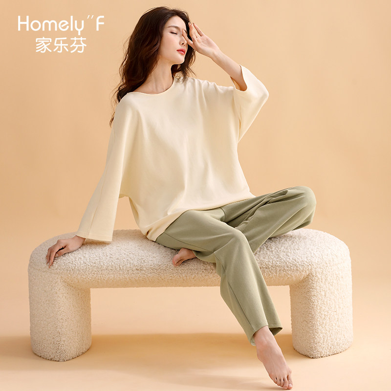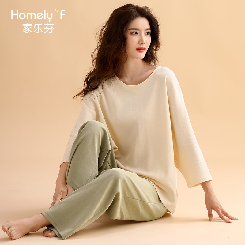 家乐芬睡衣女士春秋季秋款纯棉长袖夏款薄款家居服休闲可外穿套装