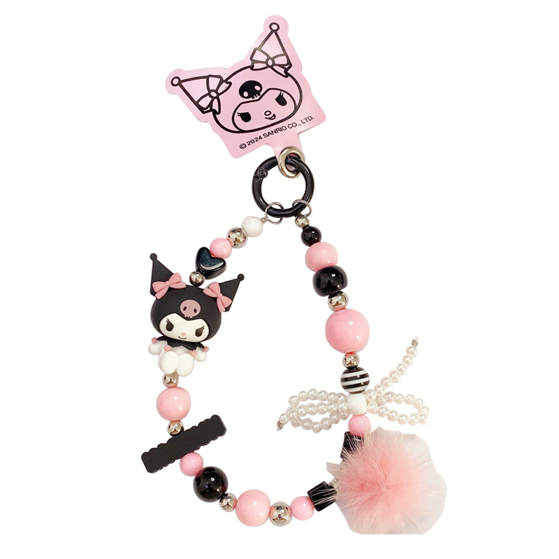 正版三丽鸥库洛米美乐蒂珠链钥匙扣手机链便携防摔短款手腕绳挂饰