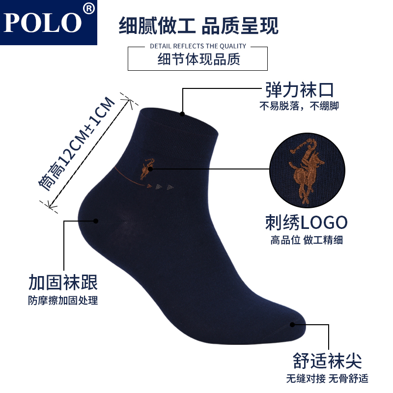 polo新品男袜中筒纯棉短袜夏季薄款防臭透气商务棉袜低帮无骨袜子
