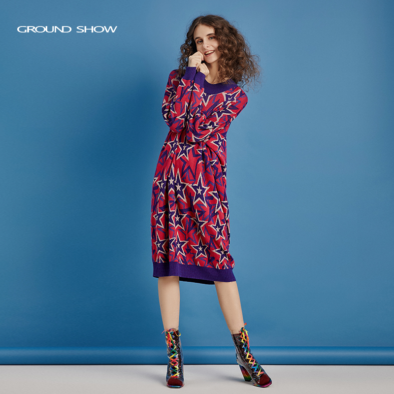 阁兰秀羊毛桑蚕丝针织连衣裙减龄