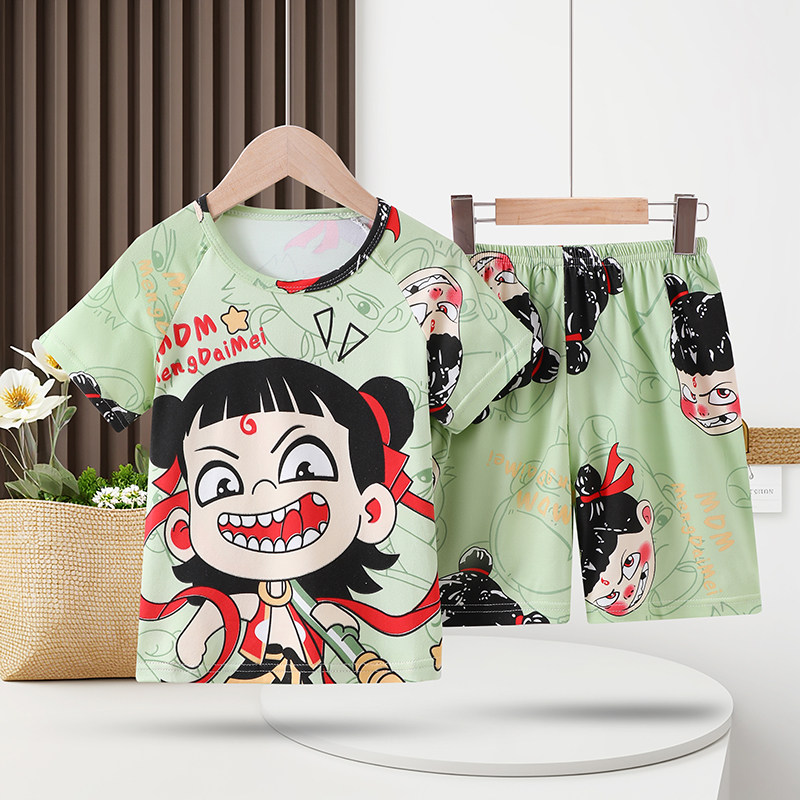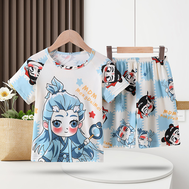 儿童睡衣男童短袖夏季薄款夏天女童卡通纯棉中大童短款套装家居服