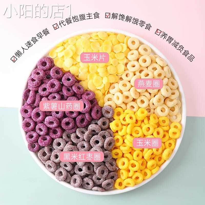 谷物圈燕麦片拌酸奶早餐代餐食品泡牛奶紫薯玉米脆减低无蔗糖