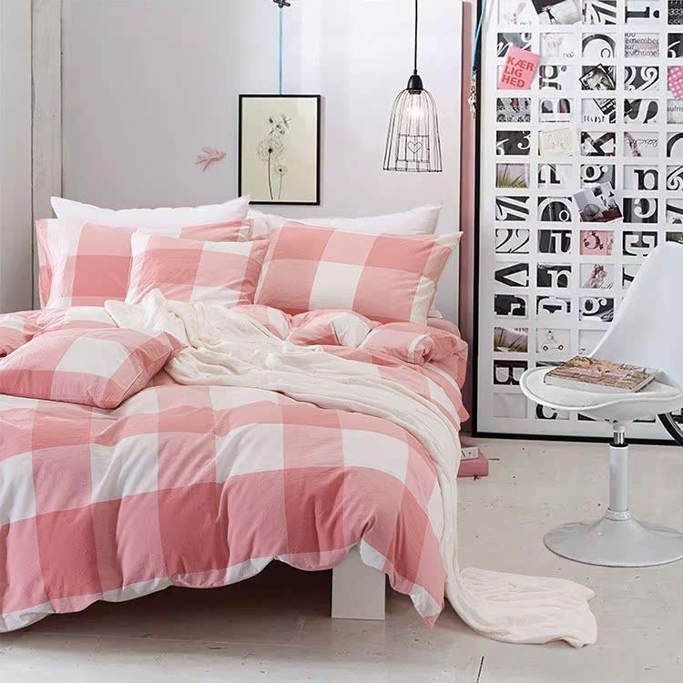 日式全棉水洗棉四件套条纹被套床单床上用品三件套1.2m床1.5米1.8