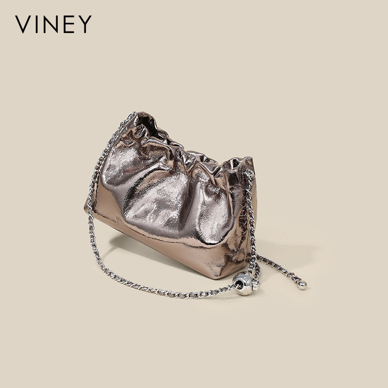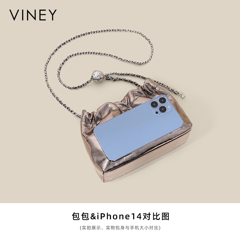 Viney包包女士网红新款斜挎包真皮女包水桶包轻奢通勤单肩链条包
