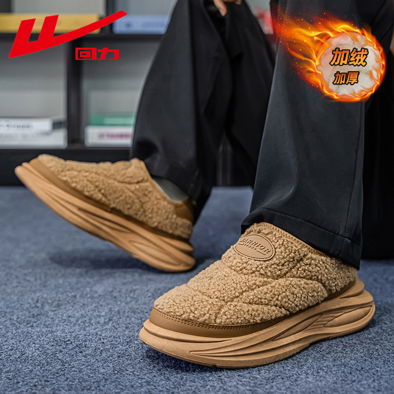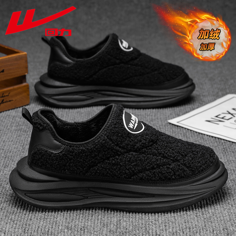 回力雪地靴男款冬季加绒加厚保暖棉鞋一脚蹬户外防滑防寒面包棉靴