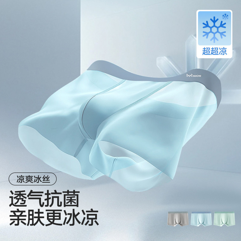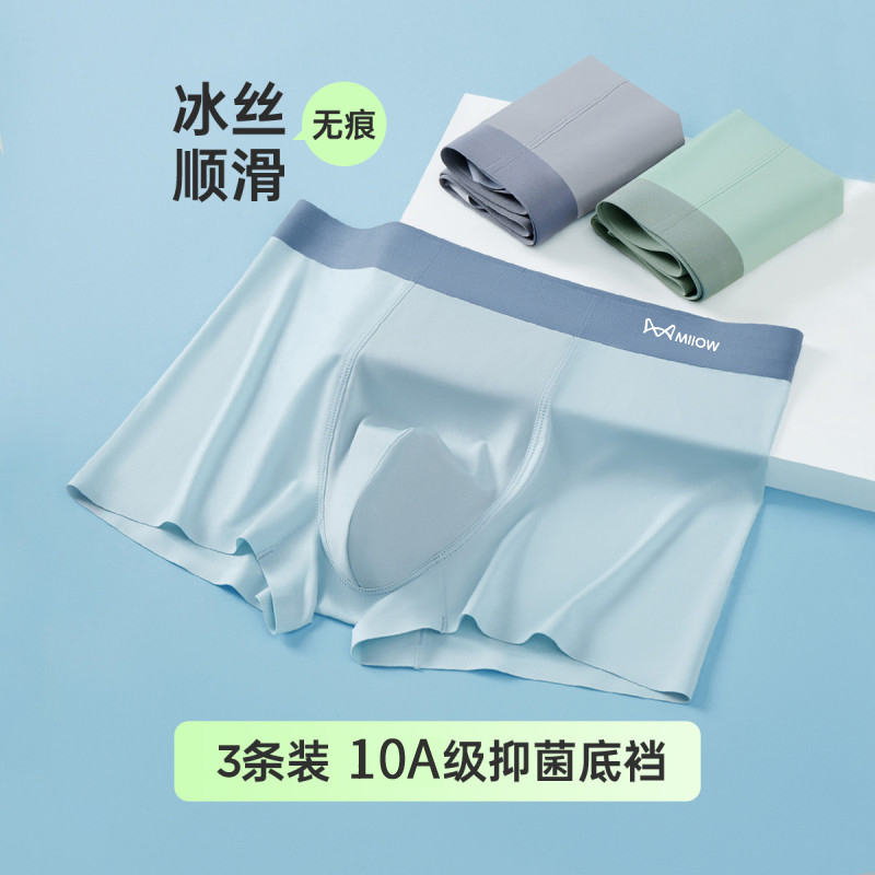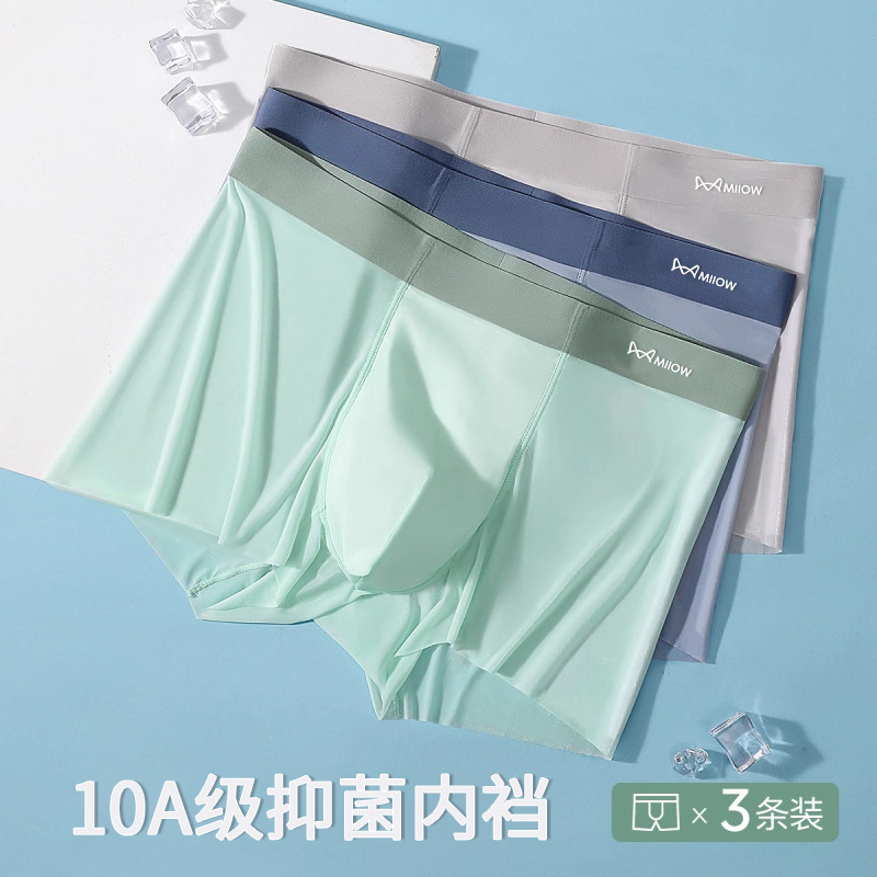 猫人男士内裤男款无痕抑菌冰丝四角底裤头夏季薄款青少年平角短裤