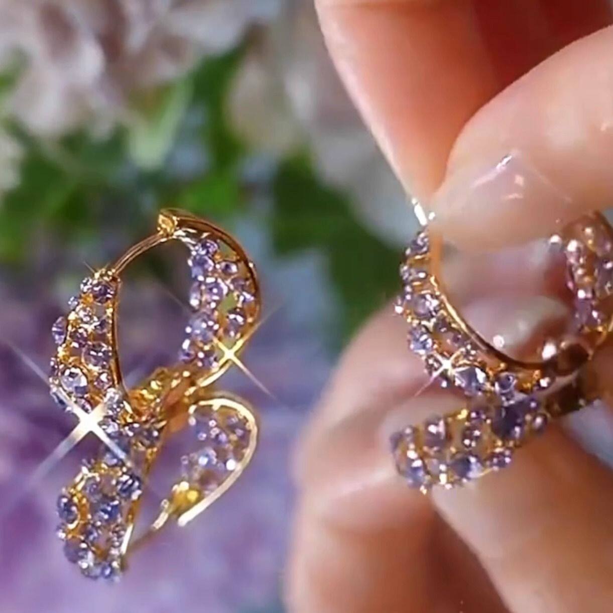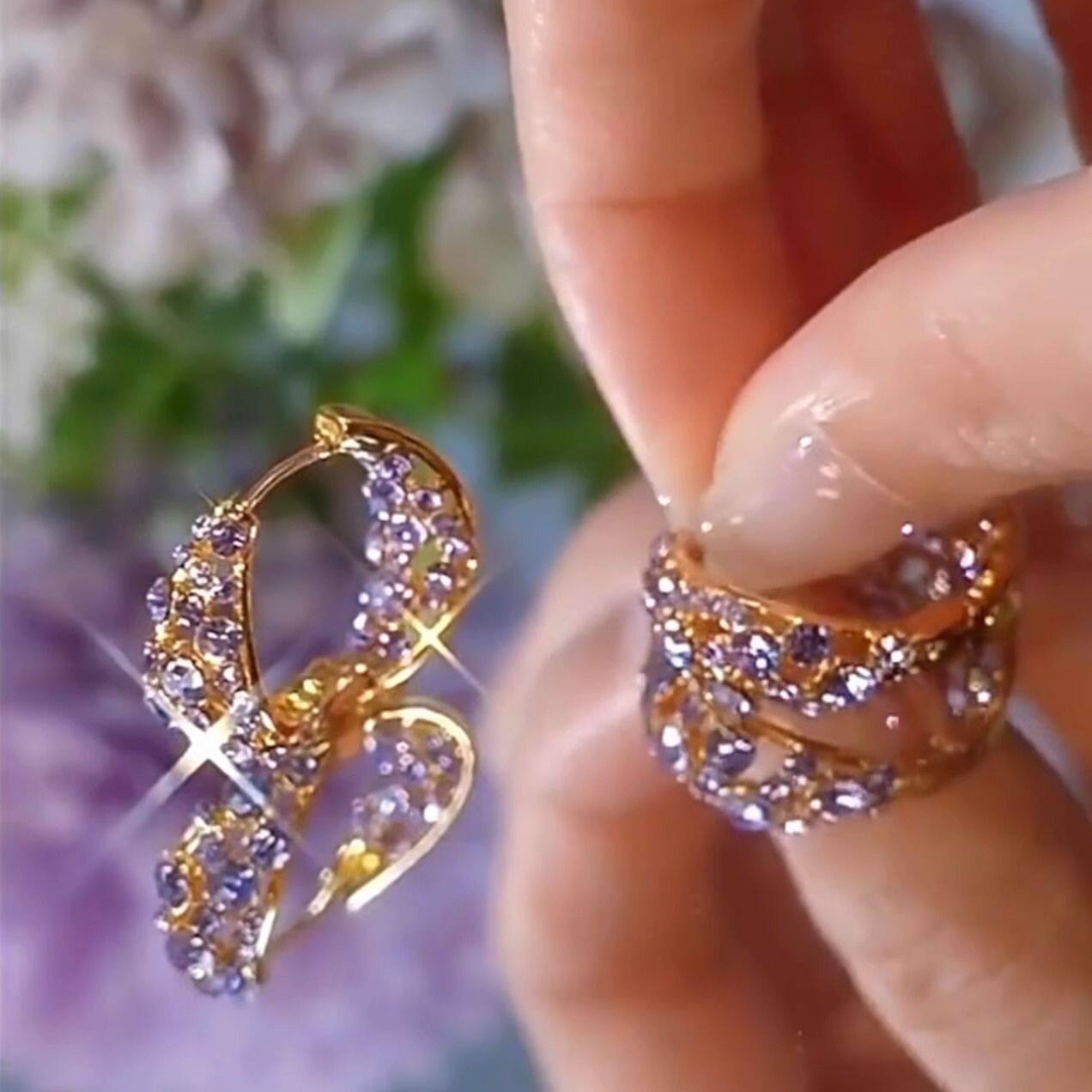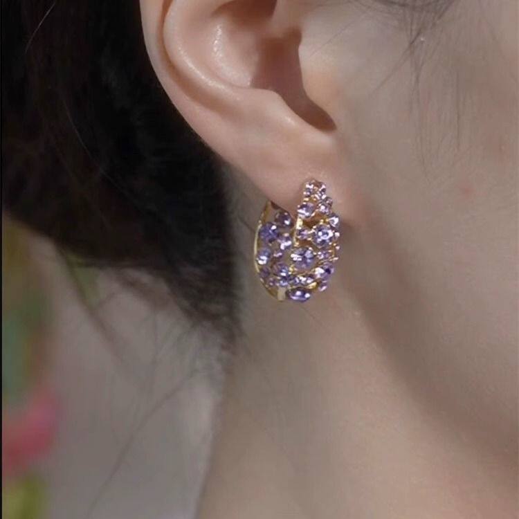 2026新款爆款仙气紫色耳环满钻圈圈耳扣小众设计高级感超闪耳饰女