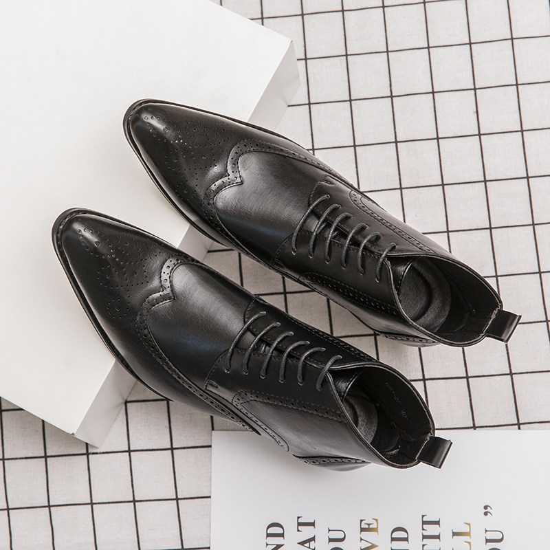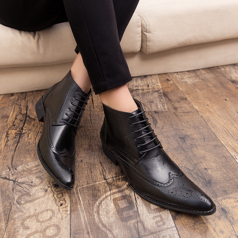 布洛克雕花皮鞋商务英伦风男鞋正装皮靴男尖头靴子高帮马丁靴短靴