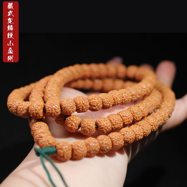 藏式龙鳞纹小金刚菩提子108颗原籽 麒麟纹文玩手串佛珠手链项链男