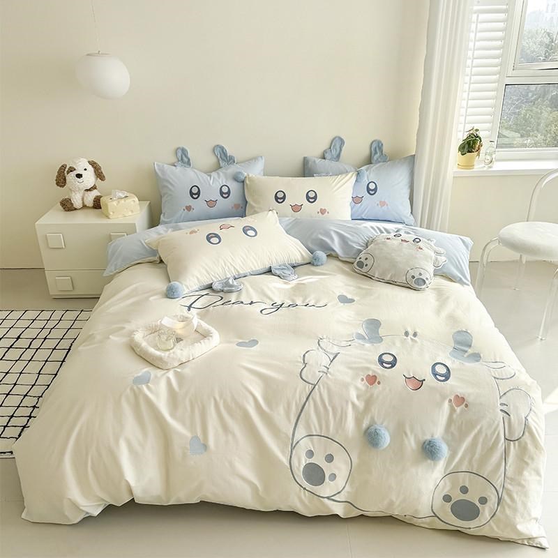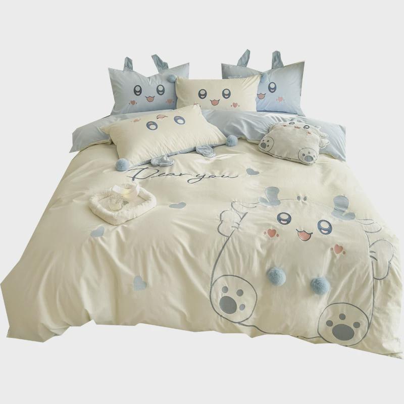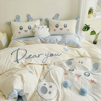 可爱立体球球小奶龙儿童床上用品四件套全棉A类柔软被套卡通