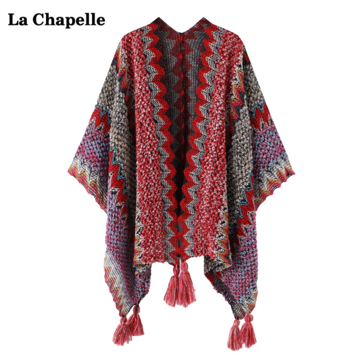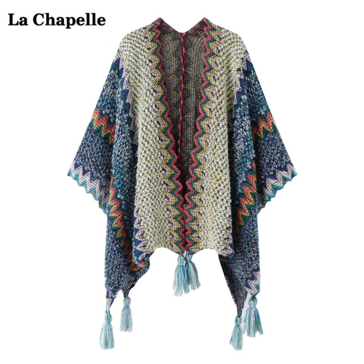 拉夏贝尔/La Chapelle复古民族风针织流苏披肩波西米亚风外套披风