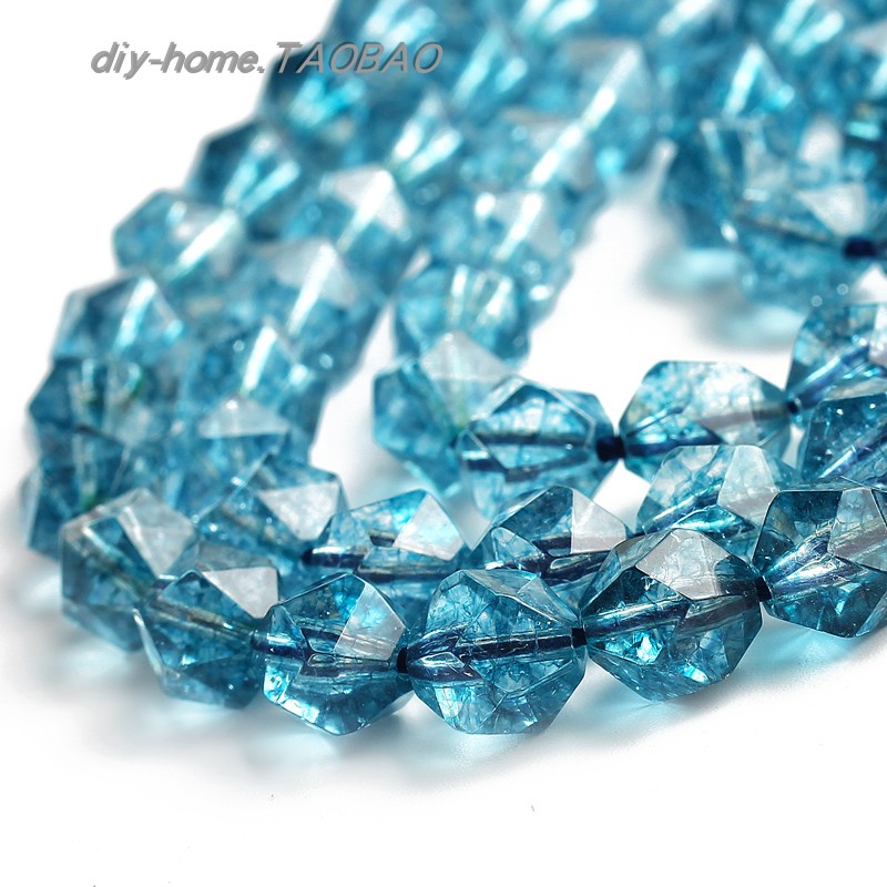 天然玉石珠子 蓝水晶散珠 钻石切面蓝晶珠 自制手链材料 diy配件