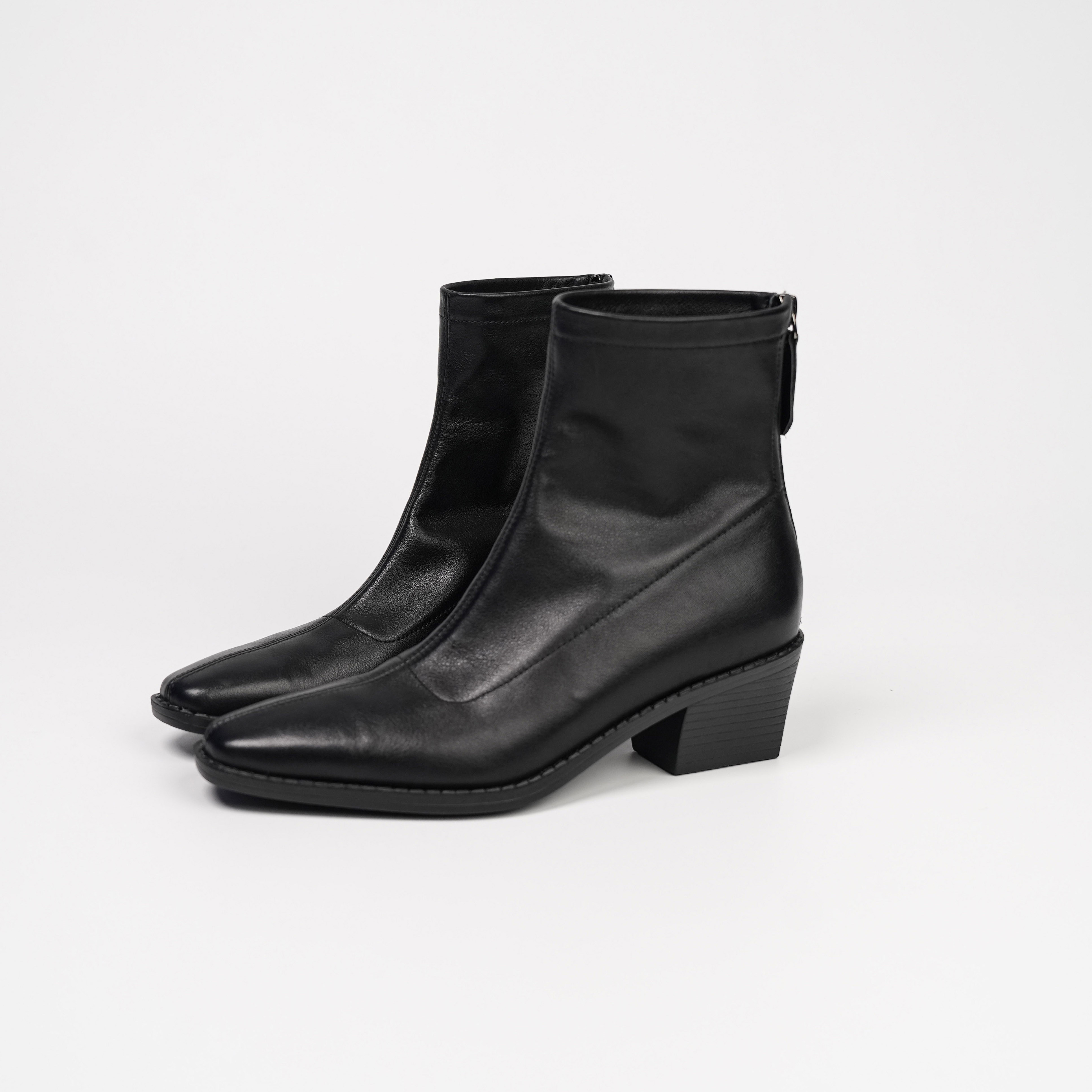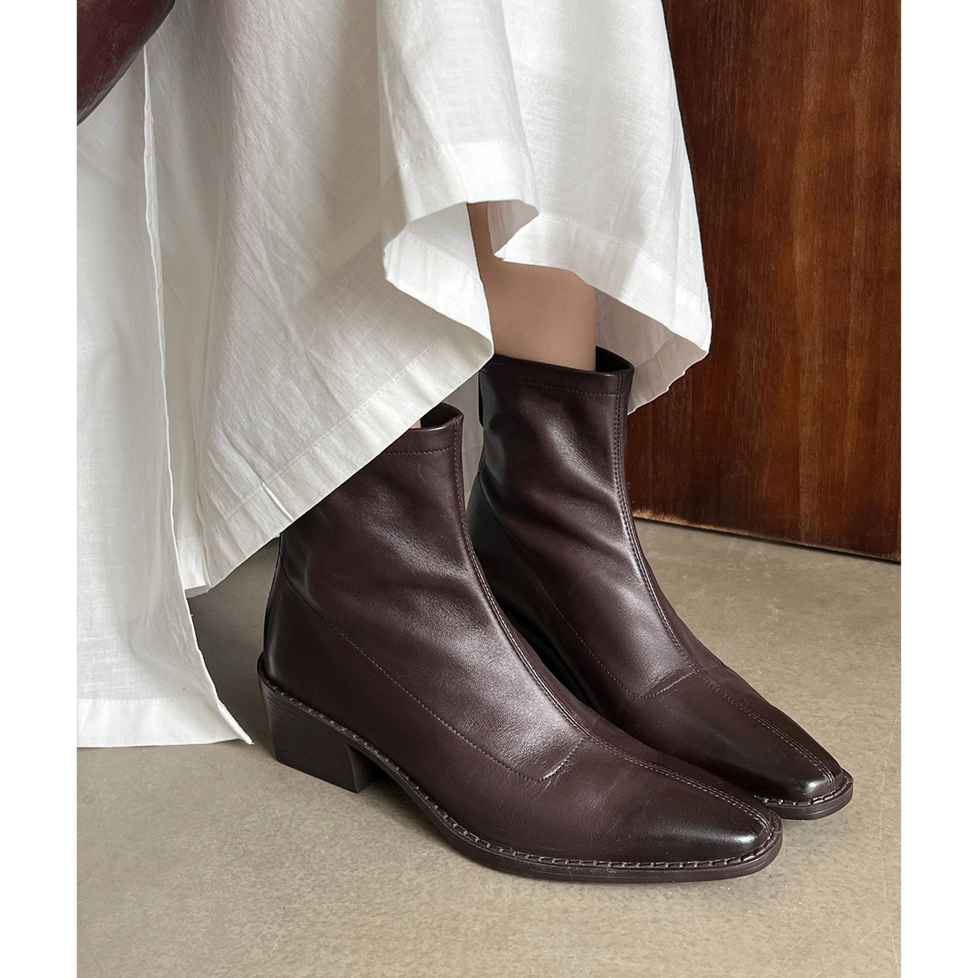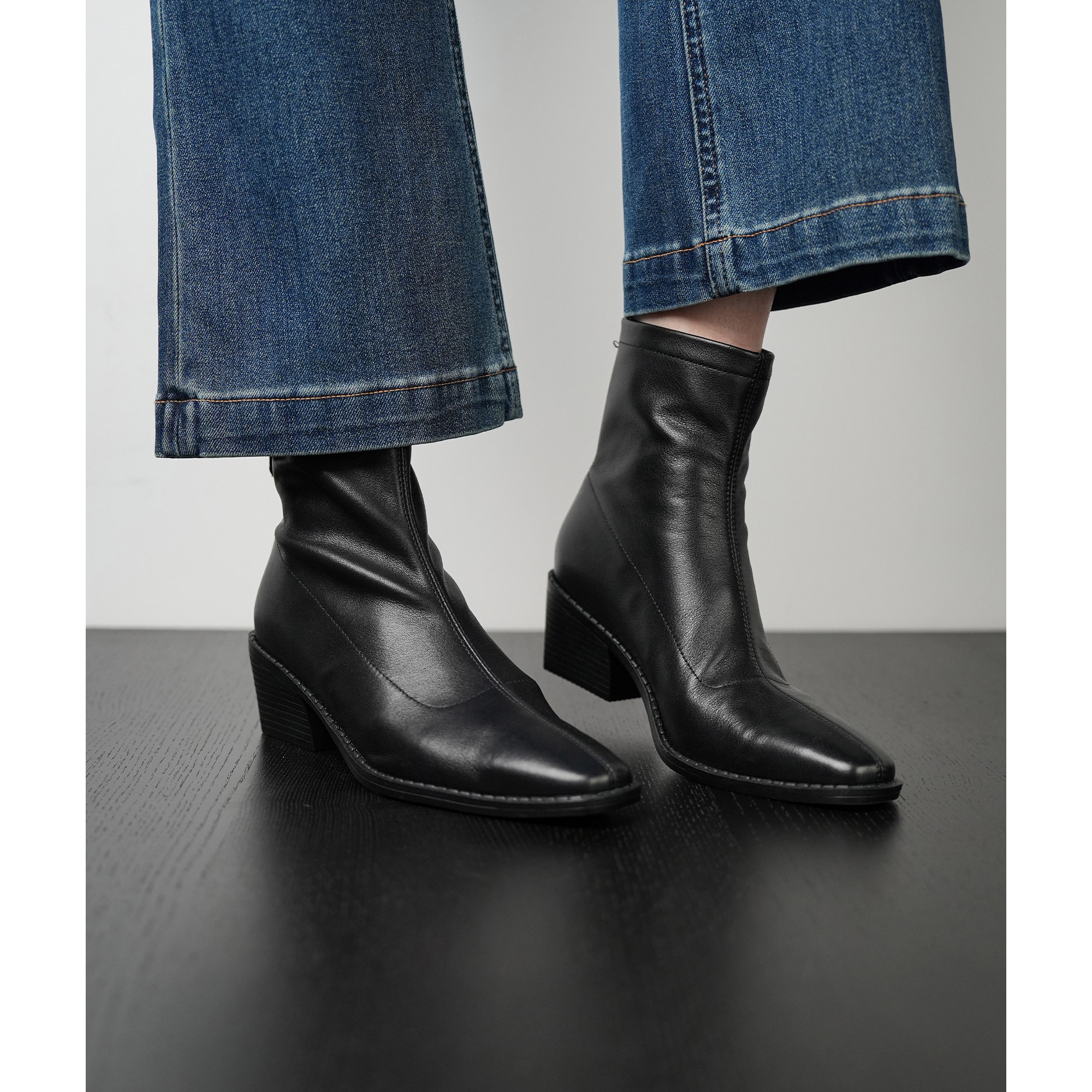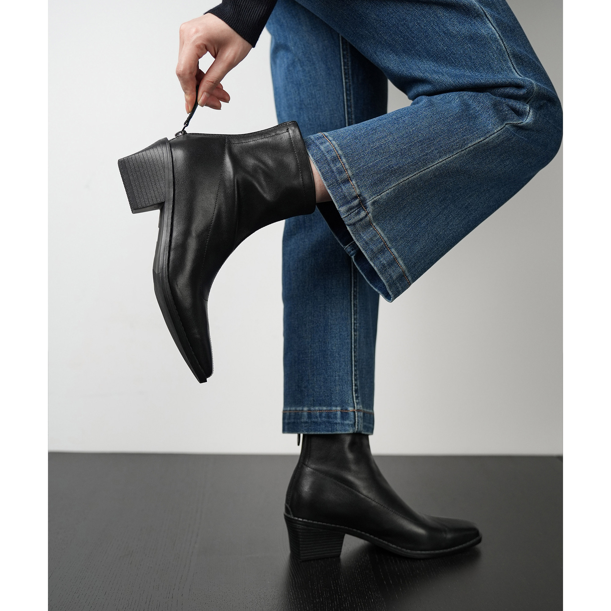 Fermina 静音跟短靴女粗跟高跟瘦瘦靴通勤女靴牛皮时尚显瘦时装靴