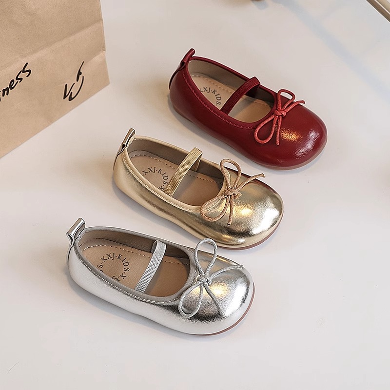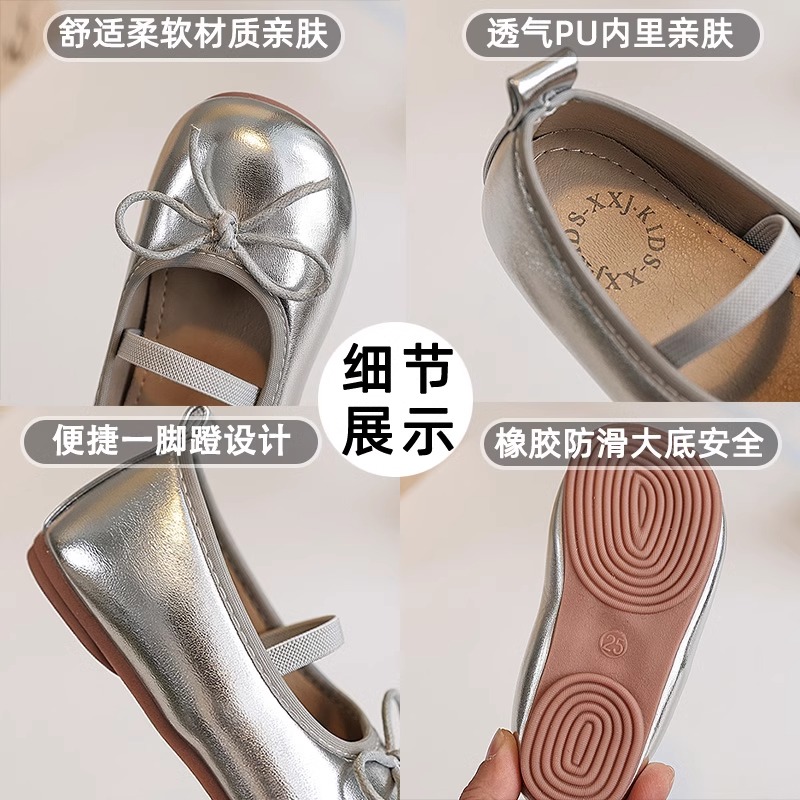 真皮女童小皮鞋2025春秋新款玛丽珍一脚蹬蝴蝶结芭蕾舞软底公主鞋
