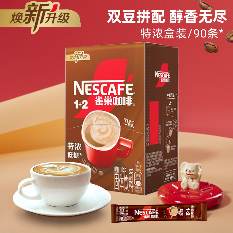 雀巢1+2意式浓醇特浓三合一速溶咖啡粉官方正品100条装旗舰店盒装