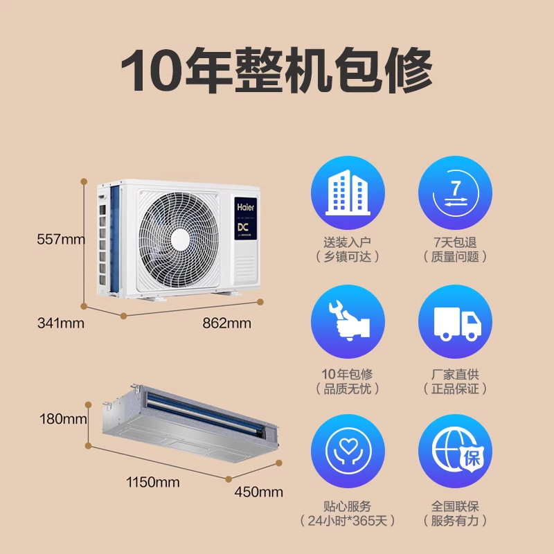 【云舒领航】海尔云舒2匹中央空调风管机新一级变频客厅空调