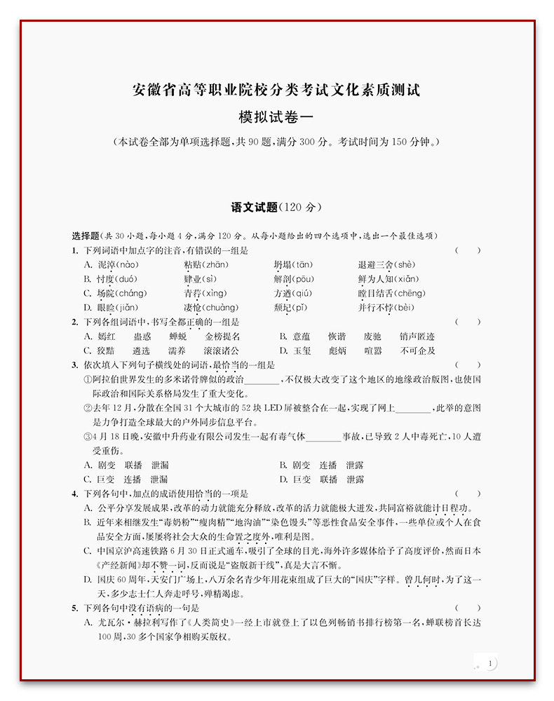安徽省高职自主招生全真模拟试卷语文数学英语合卷20套2024年自招复习资料辅导教材单招试题本科对口招生升学资料河海大学出版社