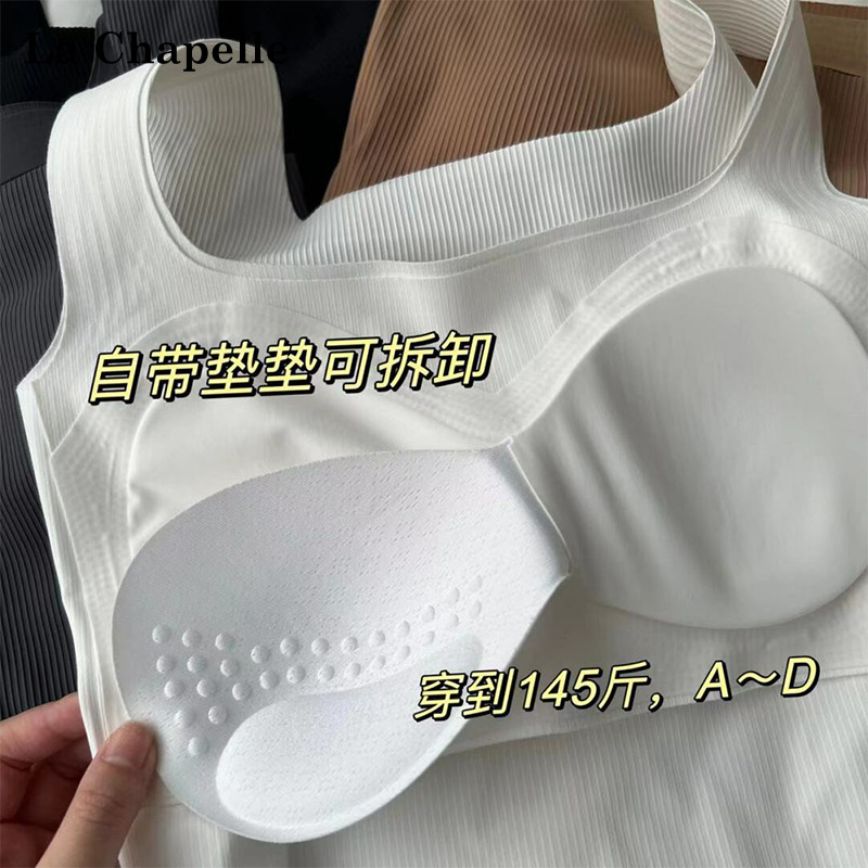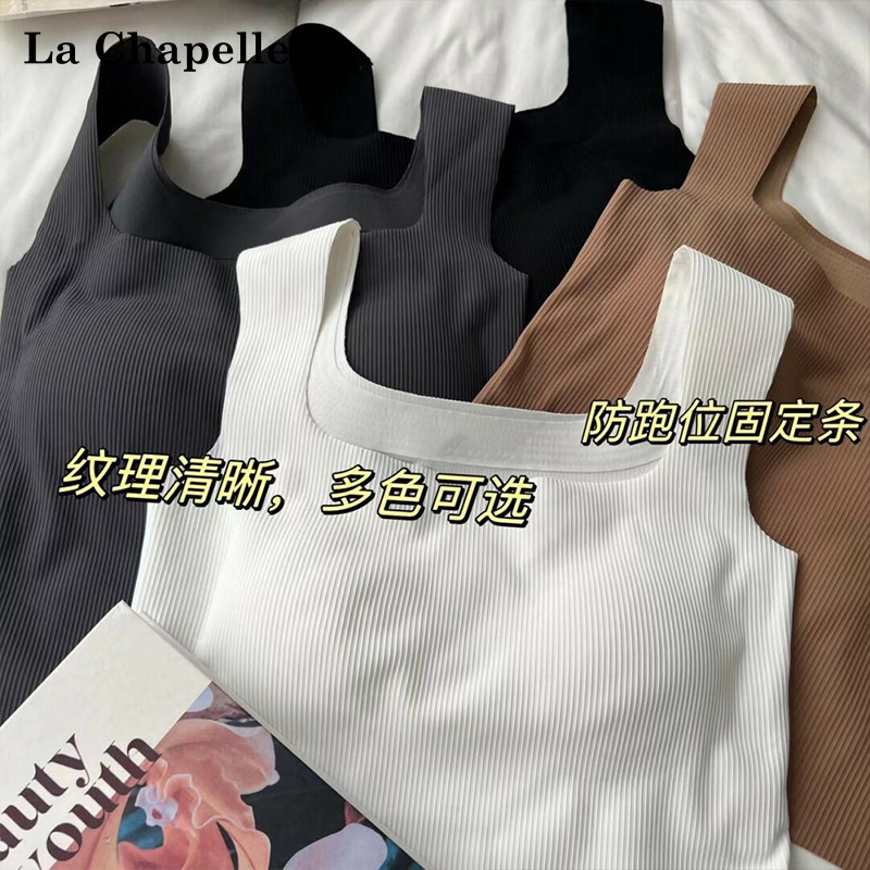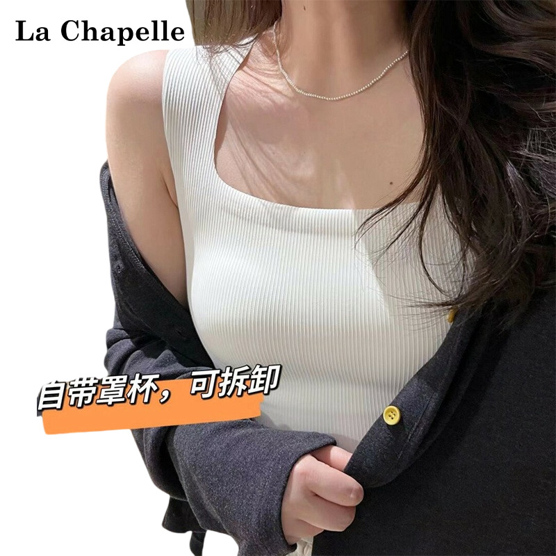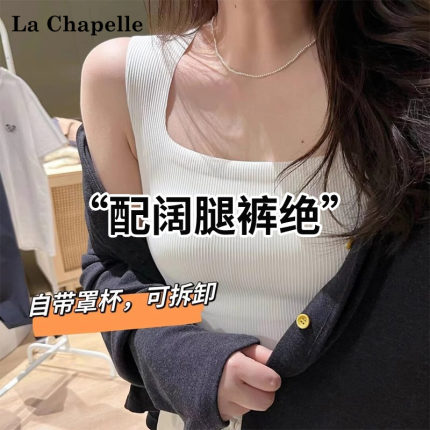 拉夏贝尔白色方领针织吊带背心女夏季外穿新款带胸垫宽松无袖上衣