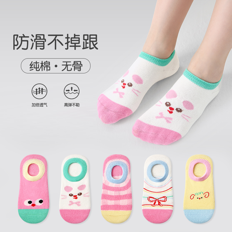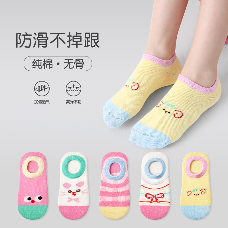 女童船袜春夏薄款纯棉儿童夏季防掉跟隐形袜宝宝可爱卡通浅口短袜