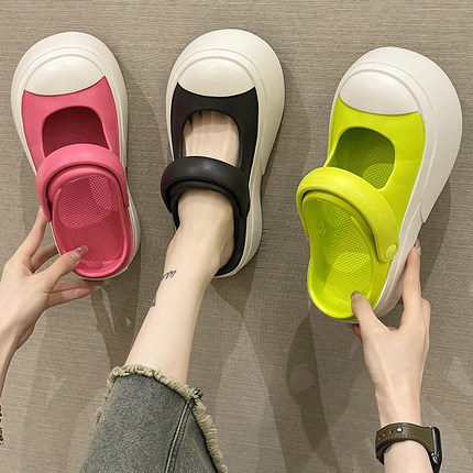 玛丽珍凉鞋女夏季网红外穿松糕厚底增高两穿包头沙滩踩屎感凉拖鞋
