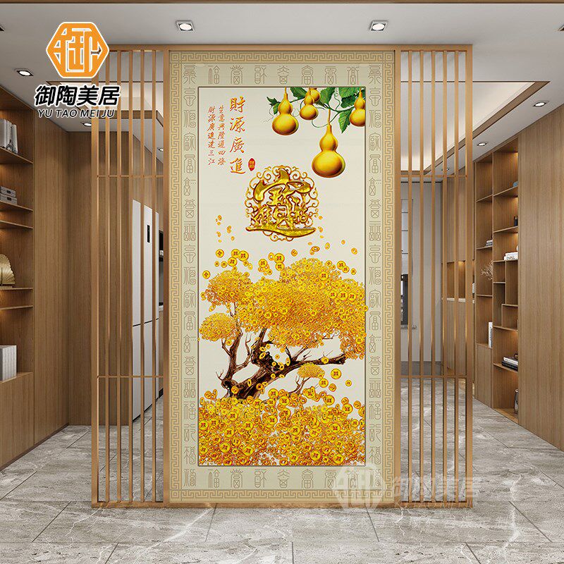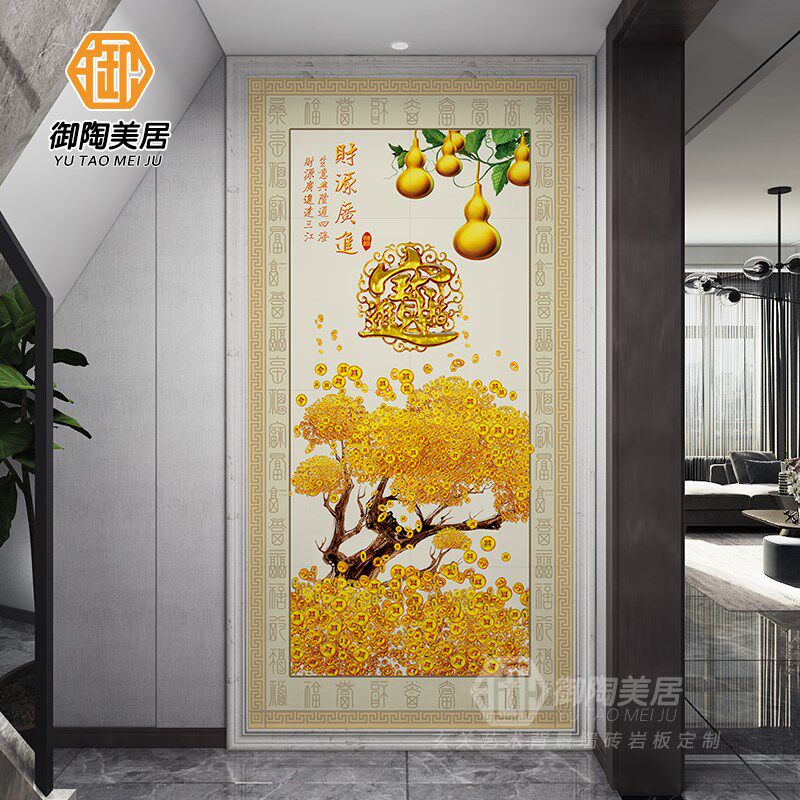中式发财树摇钱树玄关画瓷砖背景墙岩板微晶石大理石客厅浴室墙