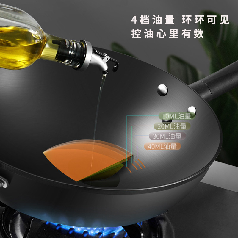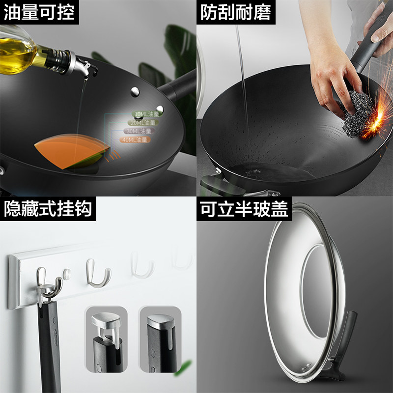 爱仕达油你控尖底大翻炒爆炒铁锅无涂层锈不了精铁炒锅 干烧同款